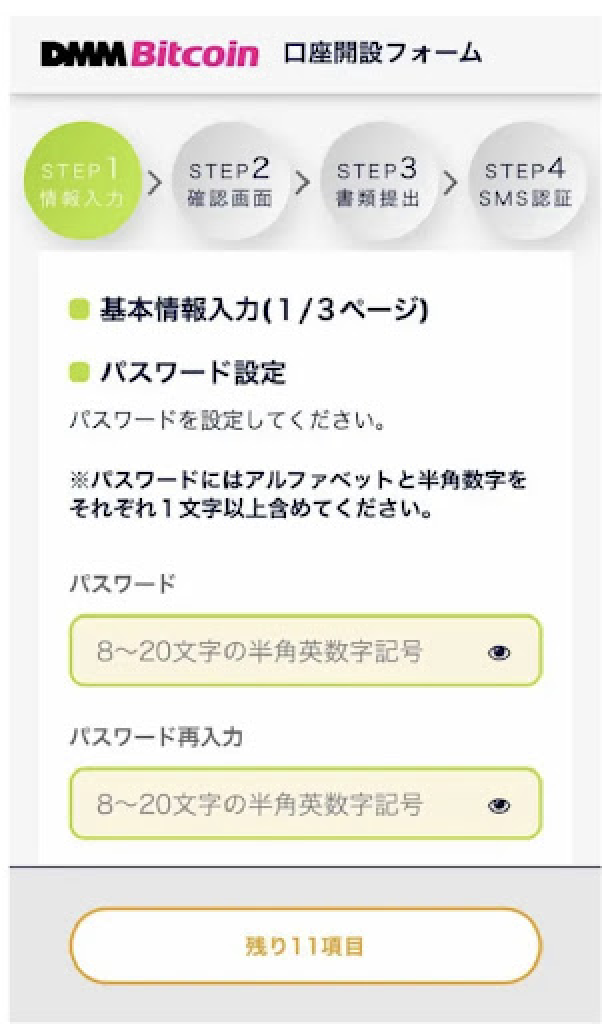 パスワード設定、契約書の同意、個人情報登録など基本情報を入力する項目を全て埋めましょう!